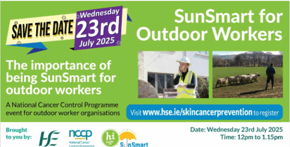 The HSE National Cancer Control Programme is hosting a webinar 'SunSmart for Outdoor Workers' on Wednesday 23rd of July 2025 from 12pm to 1.15pm. The webinar aims to highlight the importance of UV protection in the …